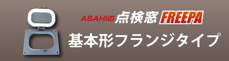 ASAHIの点検窓「FREEPA」には、基本形、ハネック形の2形式があり、それぞれに標準、網付、残留防止、フランジ材の各種タイプを取り揃えていますので、幅広い用途にお使いいただけます。